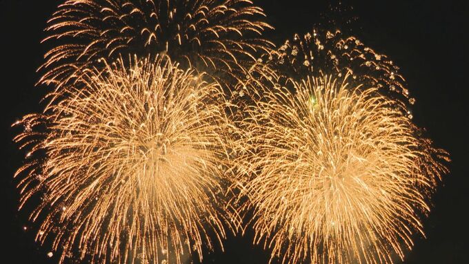 海上に打ち上げられるため、海岸線のどこからでも楽しむことができ、歩行者天国となった道路は最高の見物席となったようです。訪れた人は、夜空に広がる大輪の花火を見上げ、歓声を上げていました。