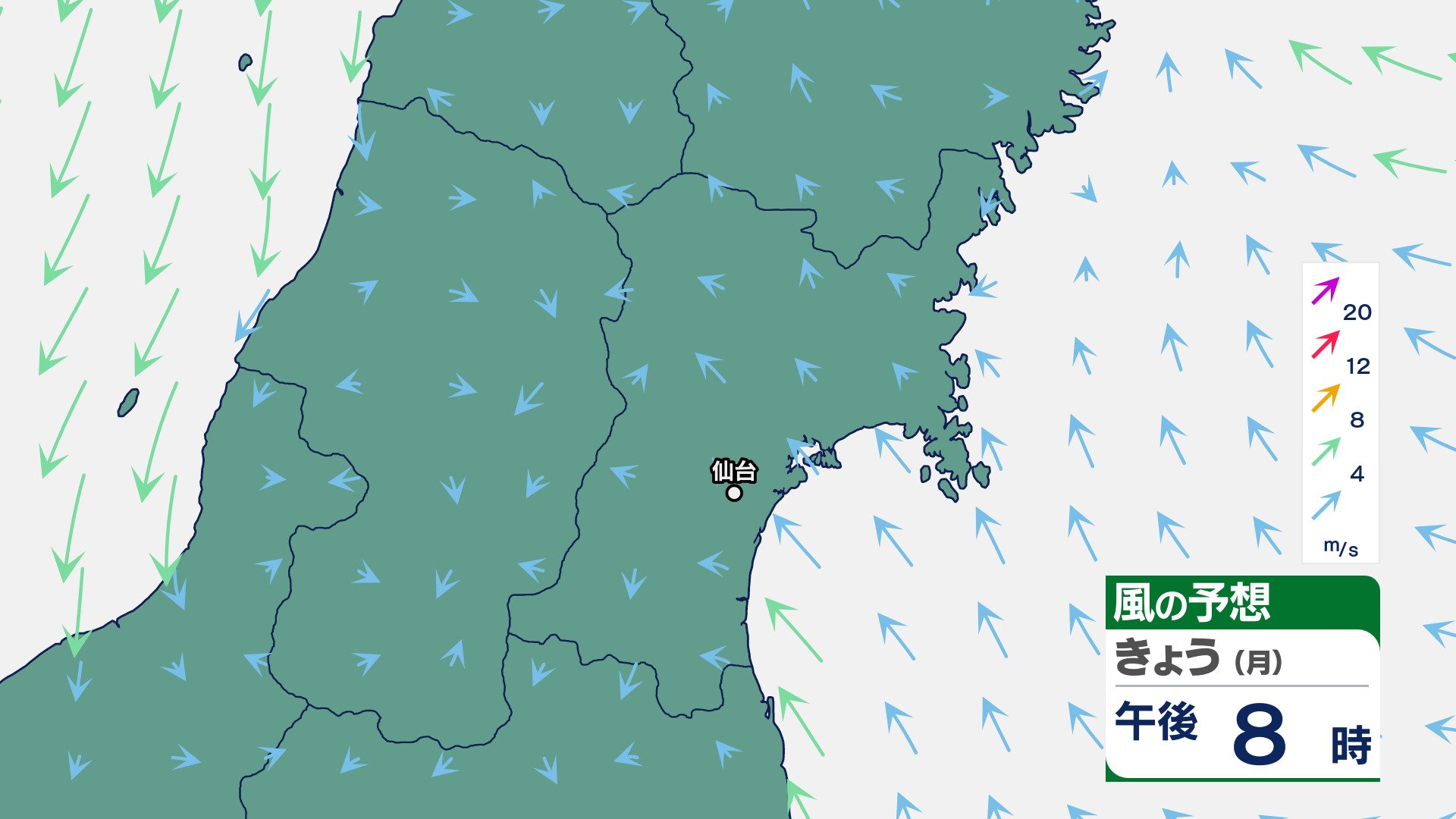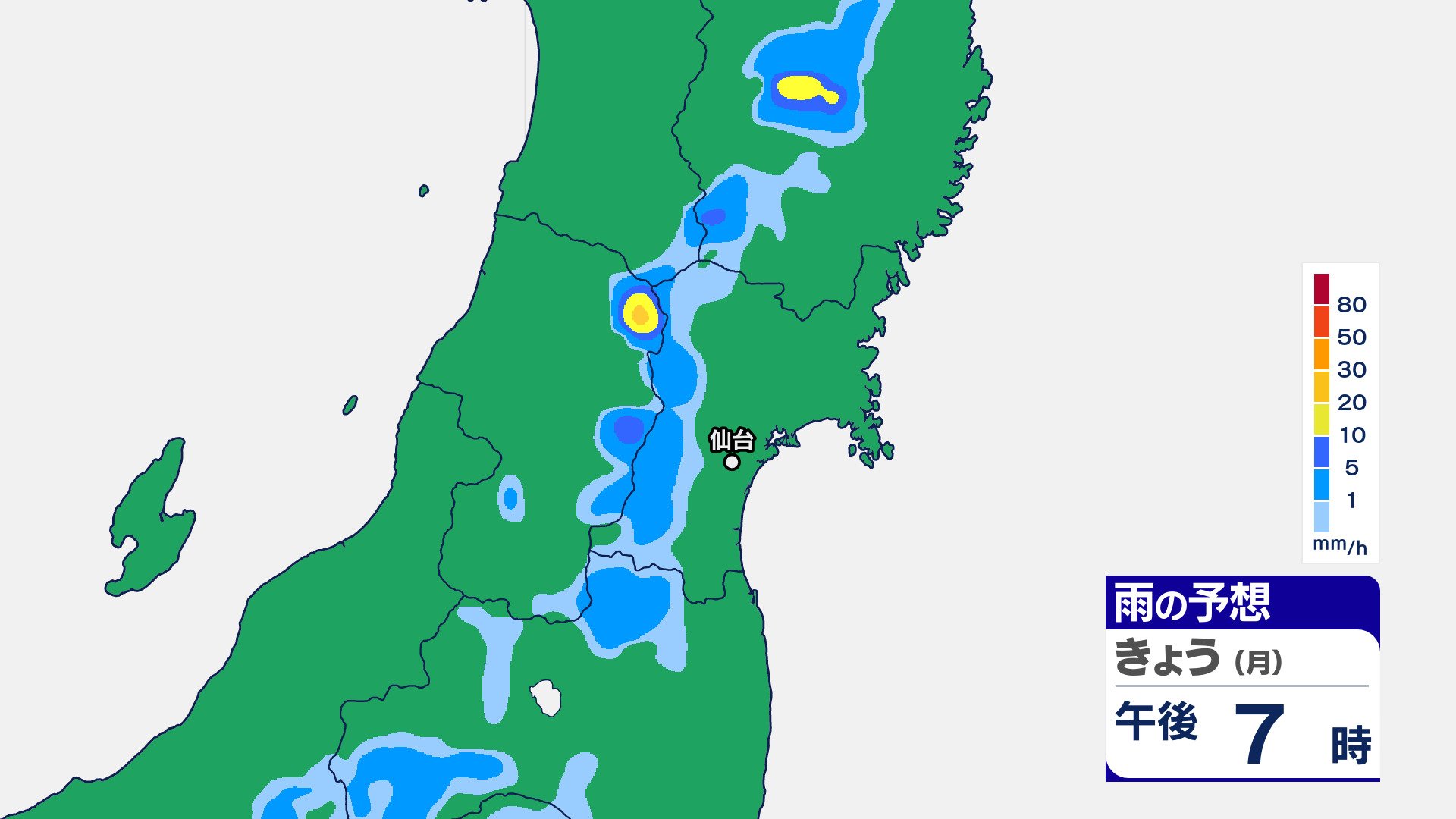 気になる天気ですが、5日の宮城県内は暖かく湿った空気の影響で大気の状態が不安定で、午前10時過ぎの時点ですでに西部には点々と雨雲が発生してきています。昼過ぎから夜のはじめ頃にかけては雷を伴い激しい雨の降る所がある見込みで、局地的には1時間40ミリの雨が降り、警報級の大雨となるおそれもあります。