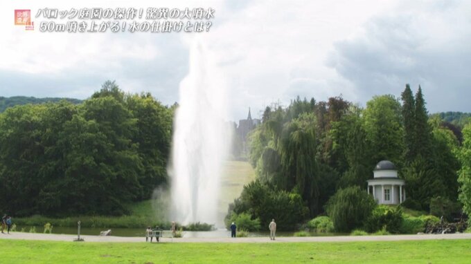 基本的にはポンプなどの動力を使わず、自然の高低差を使って噴水を上げ、人工の水路を水が流れるように工夫がされています。番組でも撮影したのですが、これほど見どころのたくさんある水の庭園がドイツにあったとは驚きでした。