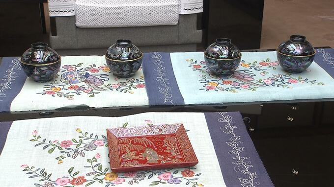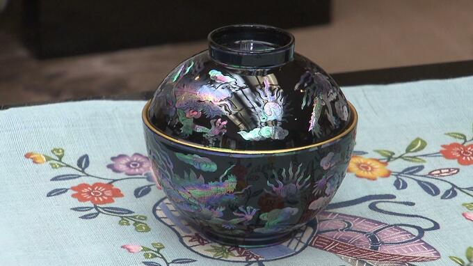 復刻した作品は、県の有形文化財にも指定されている「黒漆雲龍螺鈿椀」で、螺鈿細工を用いて夜光貝を椀の曲面に貼り付ける高度な技法が施されています。