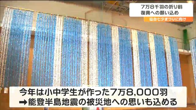 8月6日からの「仙台七夕まつり」に向け、小中学生が震災からの復興への願いを込めて作った折り鶴飾りの仕上げ作業が行われました。
