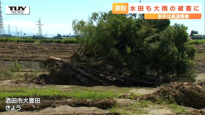 大雨の被害は農作物にも広がっています。山形県酒田市の荒瀬川の流域は、巨大な木が流れ着いたままになっていて、堤防のすぐとなりには水田が広がっています。 三笠喜美夫さん「完全に水没して海になっていました…