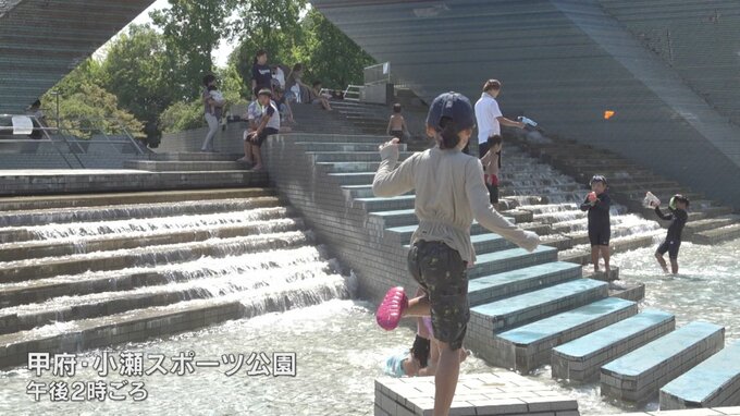 甲府市の小瀬スポーツ公園では、家族連れなどが水遊びを楽しんでいました。