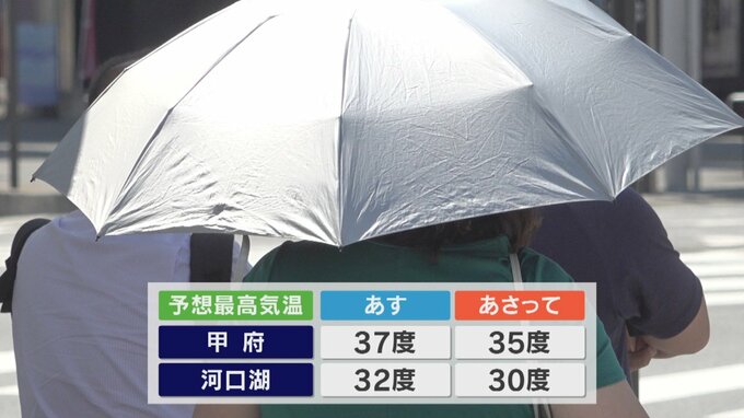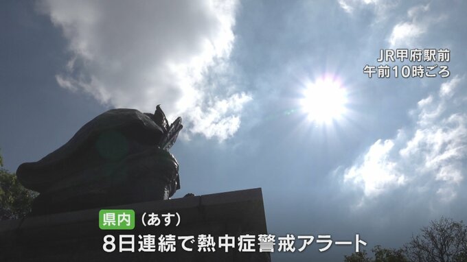 県内には3日も8日連続で熱中症警戒アラートが出されるなど週末も猛暑となる予想で、甲府の最高気温は3日が37度、4日が35度の見込みです。