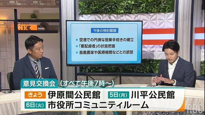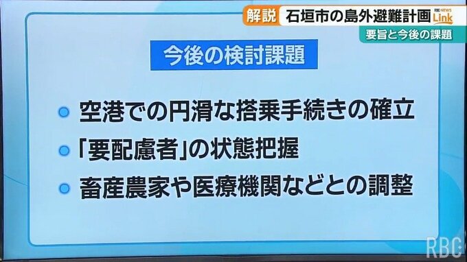 市が挙げている課題は、航空機で避難する際、空港での混乱を避けるために設置を検討している「住民避難登録センター」の運用方法の確立がこれからです。