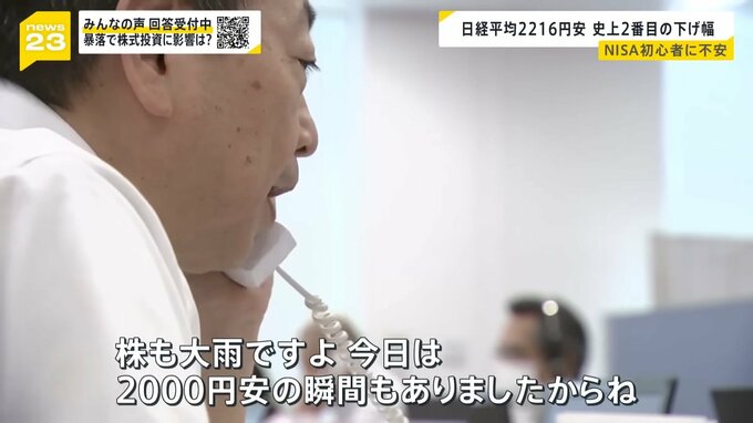 日経平均2216円安 史上2番目の下げ幅 NISA初心者に不安