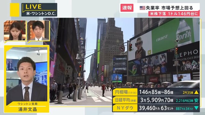 市場では、この失業率の悪化が“アメリカが景気後退局面に入ったことを示すシグナルだ”と受け止められています。