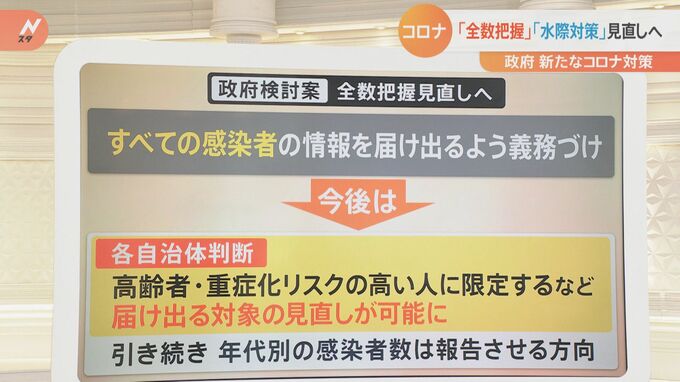 現在は全ての感染者の情報を届け出るよう義務付けされていますが、今後は各自治体の判断になるということです。高齢者や重症化リスクの高い人に限定するなど届け出る対象の見直しが可能になります。