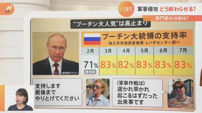 当初の目的は今から達成することはほぼ不可能だというふうに思うので、プーチン大統領としてはメンツを保つ状態で何らかの成果を上げ、自分たちの特別軍事作戦を達成したと言える環境がいつ出来上がるのかが、今後の注目点だと思います。