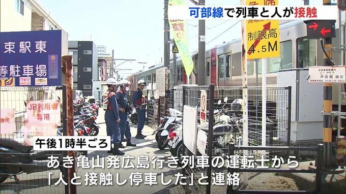 JRによりますと、事故があったのはJR可部線の安芸長束駅構内で、午後1時半ごろ、あき亀山発広島行きの列車の運転士から「人と接触し、停車した」と連絡がありました。