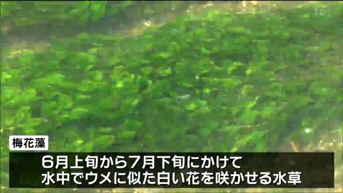 「梅花藻」は、6月上旬から7月下旬にかけて水中で梅に似た白い花を咲かせる水草で、県の準絶滅危惧種にも指定されています。