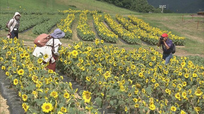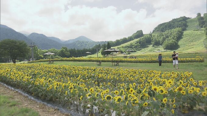 夏の日差しをたっぷりと浴びて、咲き誇るひまわり。標高1200メートルにある高山市丹生川町の「飛騨ほおのき平スキー場」では、ゲレンデに植えられた10万本ものひまわりが見頃を迎えています。