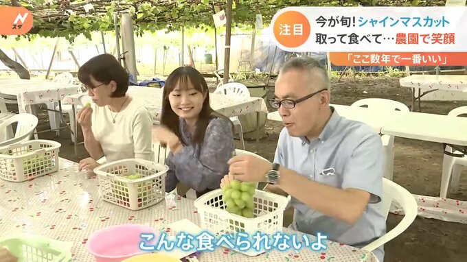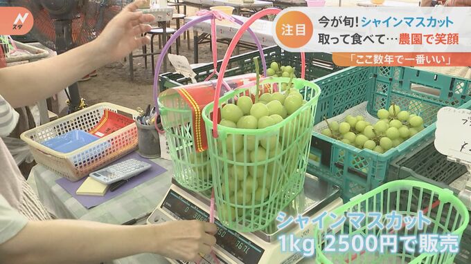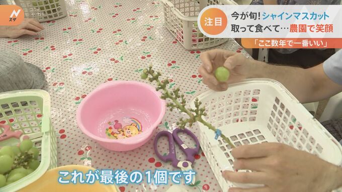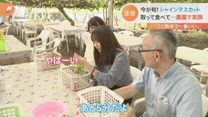 「今年のシャインマスカットは、天候に非常に恵まれてここ数年の中では一番いい出来なんです。子どもさんたちが夏休み中、自分でシャインマスカットをもぎ取って、それを食べるという。それでお客さんがけっこう大人気でやってます」