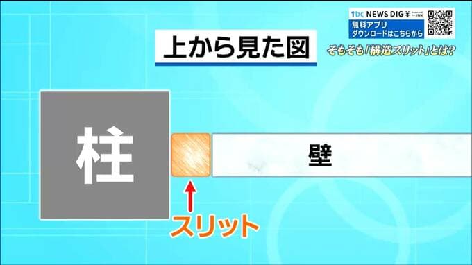 「一般的に建物には柱があって壁があります。壁と切り離すために入れるものをスリットと言っています。完全に空洞でもいいんですけど、スポンジのような柔らかいものを入れておいて柱が動けるようにする。そういう風に作ることが多い」