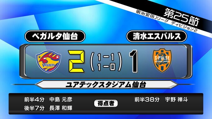 サッカーJ2、6位、ベガルタ仙台は3日、3週間ぶりとなるリーグ戦。ホームで首位、清水と対戦しました。