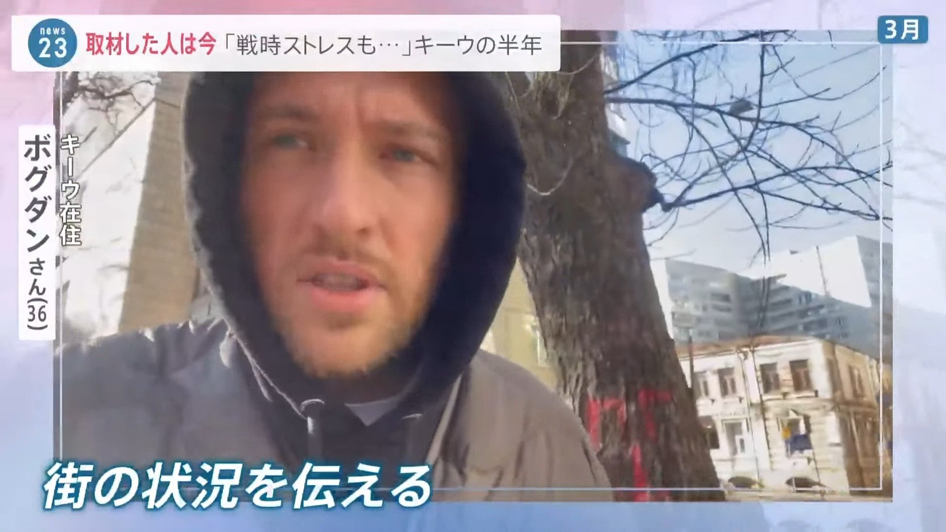 侵攻直後、首都キーウも攻撃を受けました。この時、状況を伝えてくれたのが、中心部に住むボグダンさん(36)です。