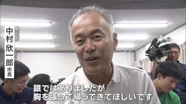 一方、メンバーの一人山田優選手の地元、三重県鳥羽市では中村欣一郎市長や市民ら約30人が集まり声援を送りました。