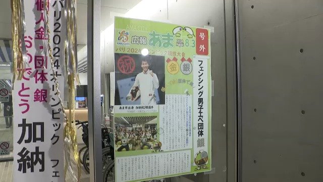 あま市役所には号外が貼り出されたほか、加納選手を称える懸垂幕も掲げられました。