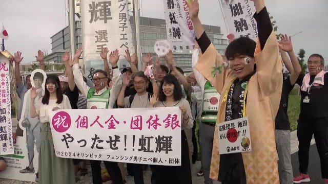 「加納虹輝選手、個人金、団体銀おめでとうございます!バンザ~イ!」