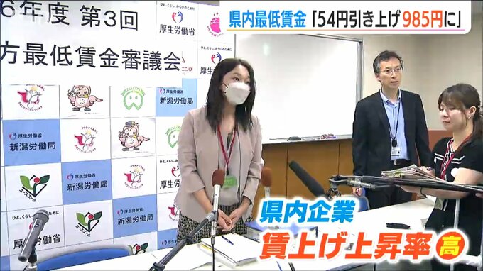 新潟県内の最低賃金を話し合う審議会が5日開かれ、過去最大の上げ幅となる54円引き上げ、時給985円とするべきとしました。県内の最低賃金改定について話し合う審議会が5日、議論の結果を新潟労働局に答申しました…