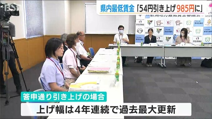 新潟県内の最低賃金を話し合う審議会が5日開かれ、過去最大の上げ幅となる54円引き上げ、時給985円とするべきとしました。