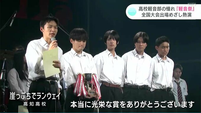 最優秀賞を手にした「崖っぷちでランウェイ」は高知県代表として8月21日の全国高校軽音楽コンテストに出場します。