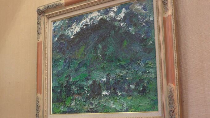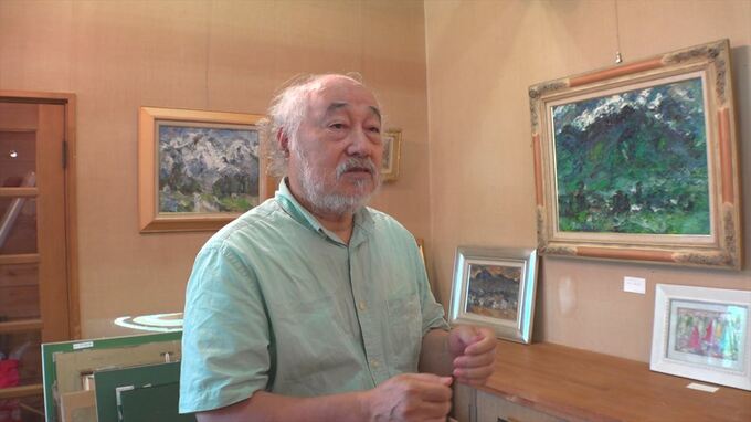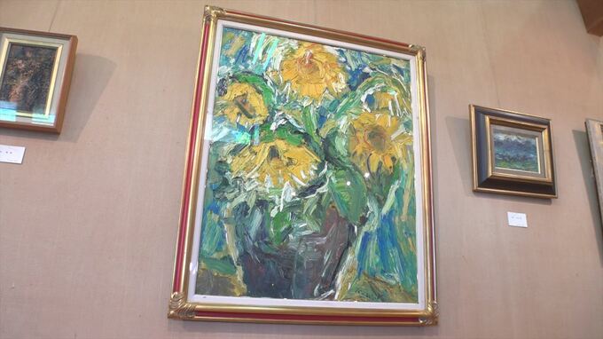 自宅の隣にある「ギャラリーこいで」で開催中の作品展では、季節ごとの八ヶ岳や力強いタッチで描かれたひまわりなどの油絵およそ30点が並んでいます。