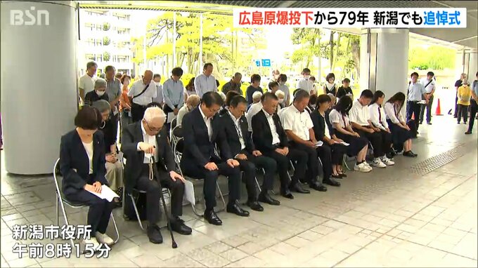 新潟市役所では、広島に原爆が投下された午前8時15分、犠牲者を悼み黙とうが捧げられました。