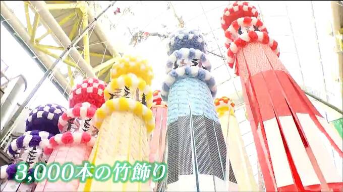 仙台市内の商店街には吹き流しなどの色鮮やかな飾りが施された竹飾りがおよそ3000本設置されています。