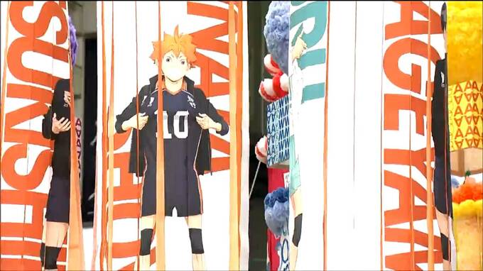 仙台が舞台の人気漫画『ハイキュー!!』の吹き流しもお目見えしています。