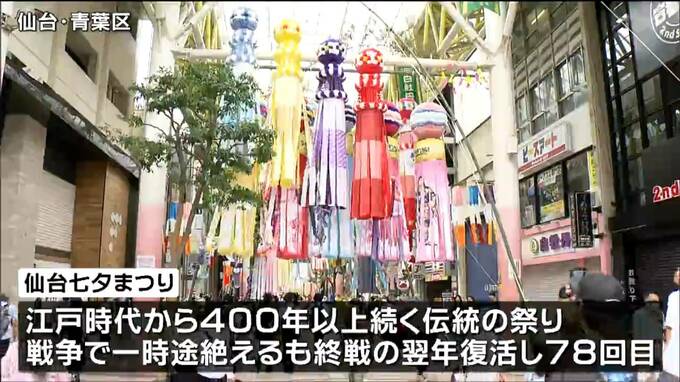6日から開幕した仙台七夕まつり。江戸時代から400年以上続く伝統の祭りで、戦争で一時途絶えたものの、終戦の翌年には復活し今年で78回目を迎えます。