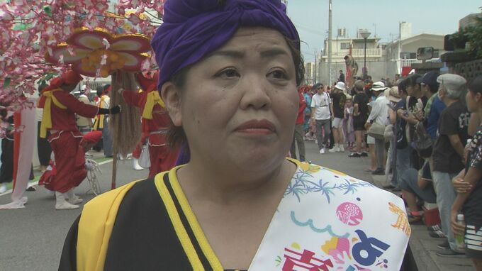 地元に恩返しをしたいと、今年、与那原町初の観光大使となり、綱曳きの隊列に参加しました。女性が参加するのは初めてです。