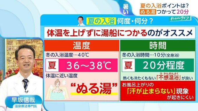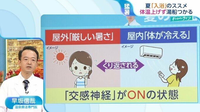 温泉療法専門医でもある、東京都市大学の早坂信哉教授は「夏もしっかり湯船に浸かった方が良い」と話します。