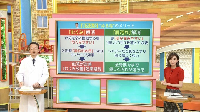 夏は紫外線などの影響で肌が傷みやすくなっており、優しく汚れを落とす必要があります。シャワーだけより、ぬるい風呂にしっかり浸かって強くこすらずに汚れを落とす方が肌に負担がかかりません。