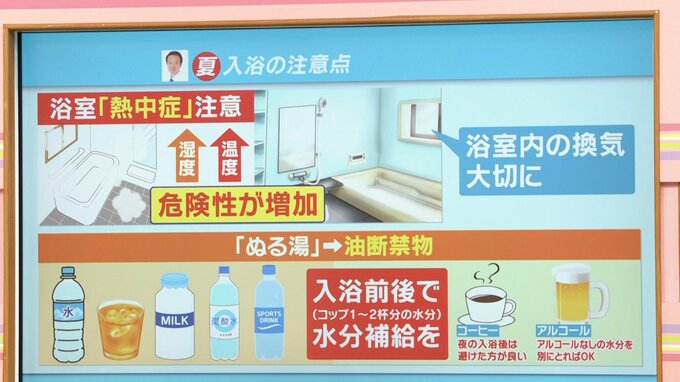 ・入浴前後でコップ1、2杯分の水分補給をしてください。
