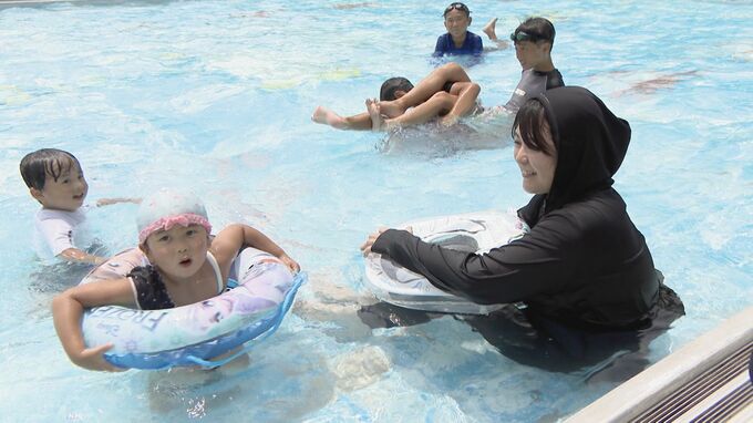 昼頃から、まぶしい日差しが照りつけた名古屋市内。きびしい暑さが続き、北区の「楠プール」には子ども達の姿が。