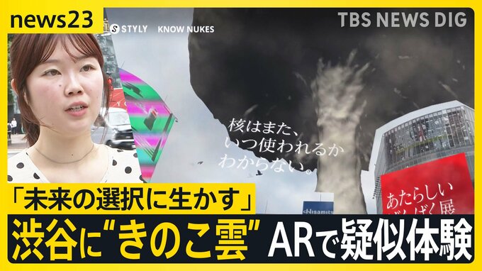8月6日は「原爆の日」。広島に原爆が投下されて、79年が経ちました。東京都内では「原爆の怖さを改めて知ってほしい」と、スクランブル交差点にスマホをかざすと、きのこ雲が立ち上がるAR(拡張現実)を考案。取り…