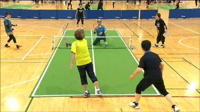 テニスコートの6分の1の広さでプレーする「バウンドテニス」の大会が仙台市内の体育館で開かれました。仙台市泉総合運動場体育館で開かれた大会には、50代から80代までおよそ100人のプレーヤーが宮城県内外から参…