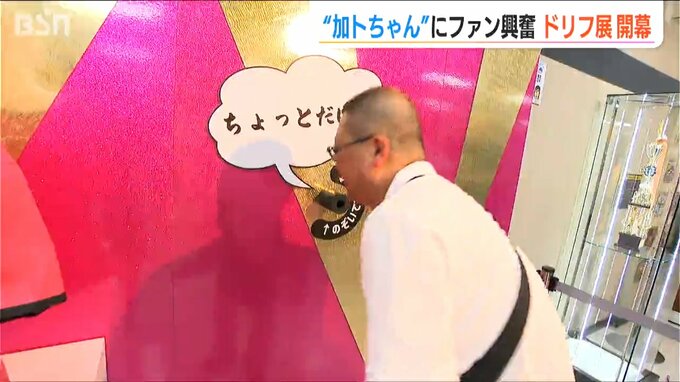会場には、加藤さんのギャグ『加トちゃんぺッ!』の片手を直接型取りした「黄金の像」や、コントで使われたかつらなどなど…。