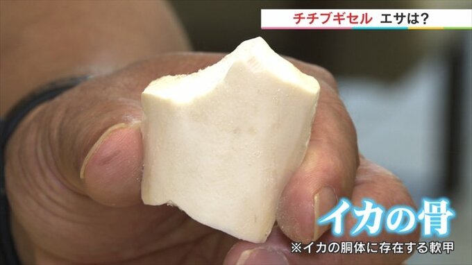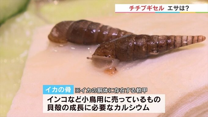 「これはイカの骨と言われているペットショップで小鳥用に売っているモノです。カタツムリは成長とともに貝殻も大きくなるんです。ですからこういうものでカルシウムを摂っているんです」