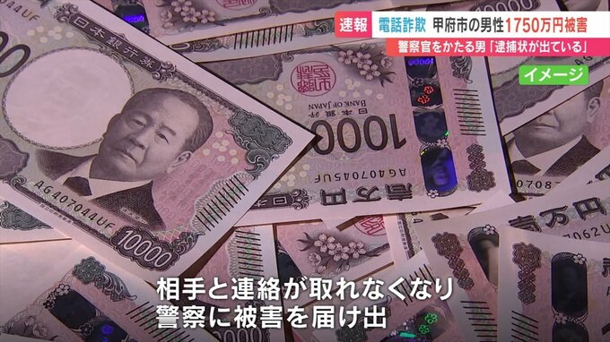 電話詐欺で甲府市の男性が、現金約1750万円をだまし取られました。