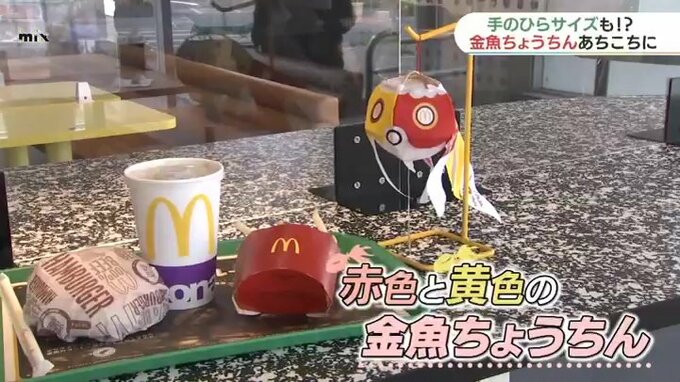 こちら、マクドナルド柳井店では赤色と黄色の2色が使われたもの金魚ちょうちん