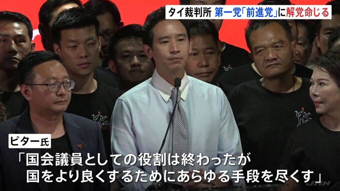 タイの王室改革などを訴え、去年の総選挙で第一党になった「前進党」について、憲法裁判所は解党を命じました。当時の党首らは政治活動が10年間禁止されます。タイの最大野党「前進党」は去年5月の総選挙で王室へ…