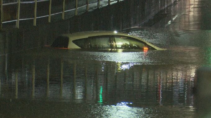 また甲府市飯田ではJR中央線の高架下を通る道路が冠水し、2台の車両が水没しました。
