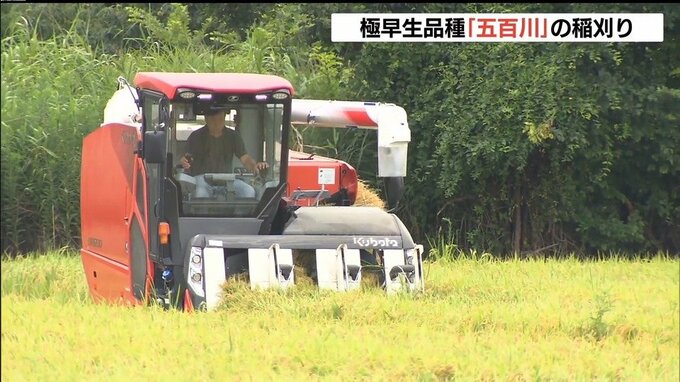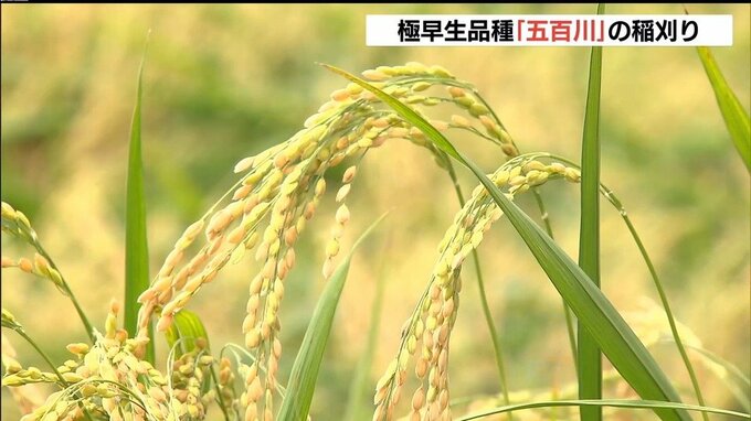 過去25年間で在庫量が最も少なくなるなど、全国的にコメ不足が深刻な中、新潟市西蒲区ではコシヒカリ系の極早生品種『五百川』の収穫が始まりました。