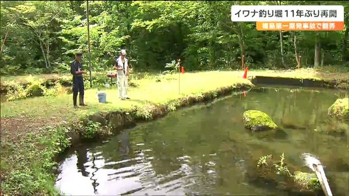 福島第一原発の影響で2013年から休業していたイワナの釣り堀が8月、11年ぶりに営業を再開しました。釣ったイワナはその場で炭火で焼いて食べることも出来ます。