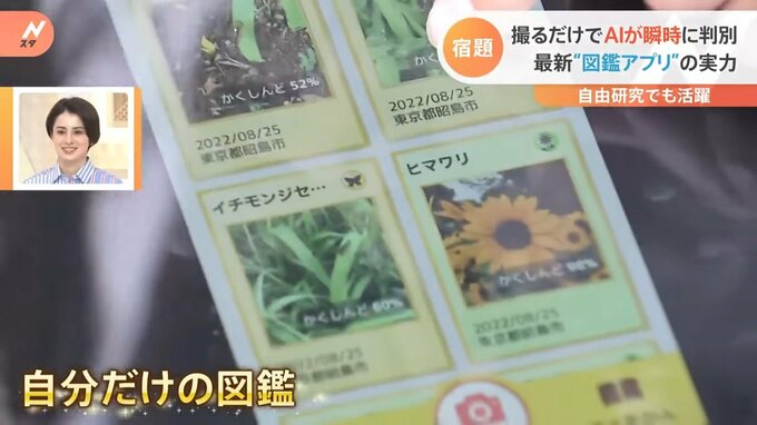 こちらは、生き物や植物の写真を撮るだけで、AI=人工知能が瞬時に名前を識別。特徴も詳しく分かるという無料アプリ「ナニコレンズ」です。