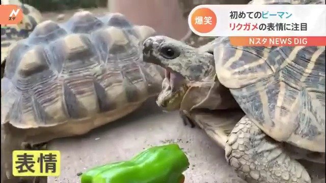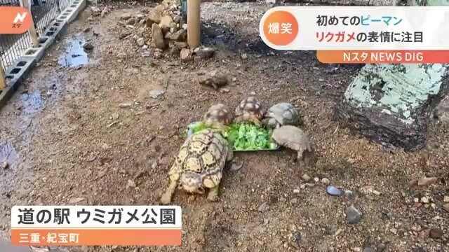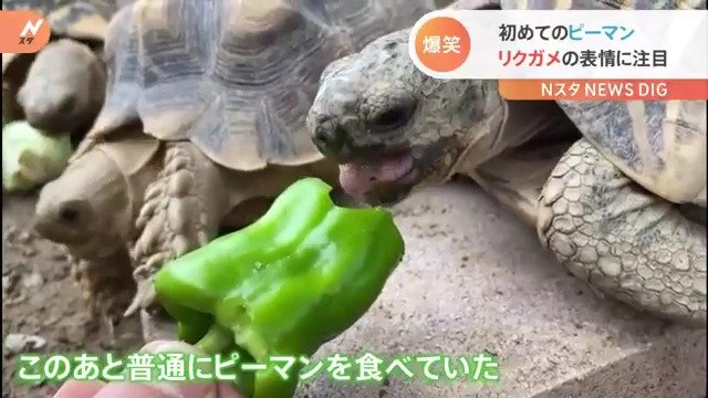 ■食欲旺盛なカメの“初めてのピーマン” 表情が話題に!