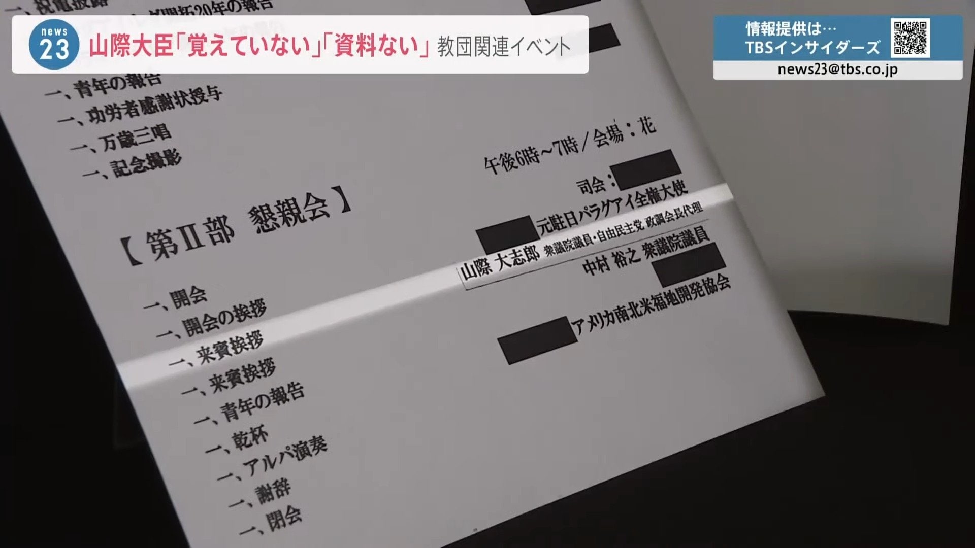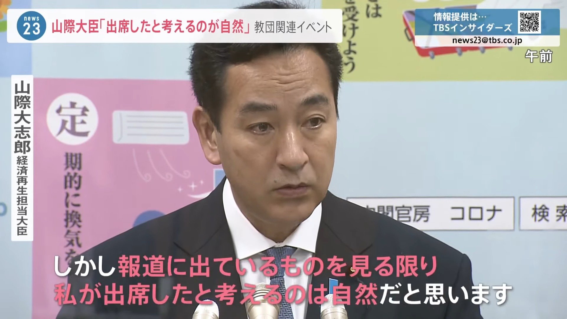 ■山際大臣 教団関連イベント出席認めるも「覚えていない」「資料ない」