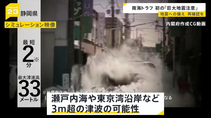 このほか、瀬戸内海や東京湾沿岸など直接太平洋に面していない地域にも、3メートル以上の津波が到達する可能性があります。